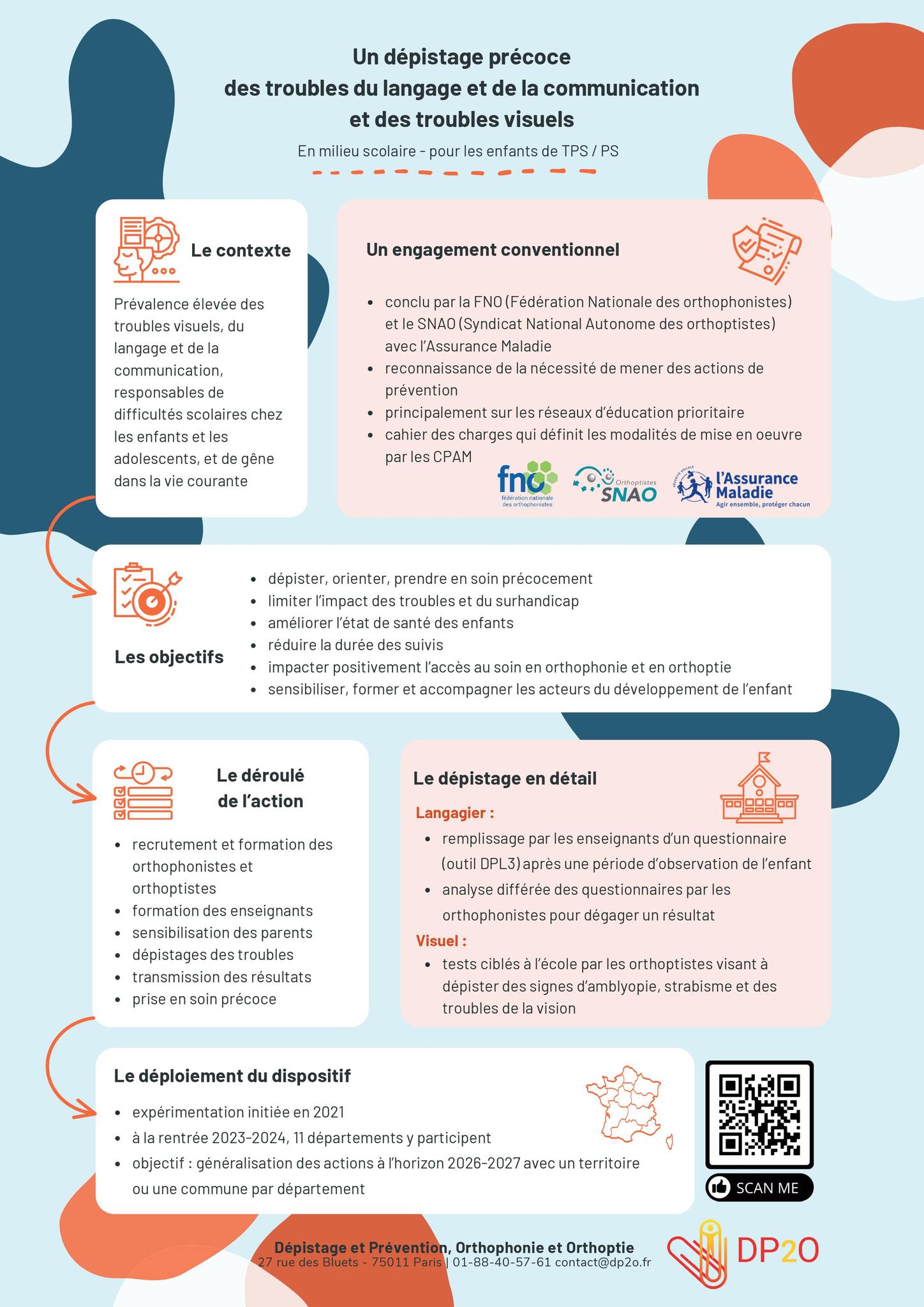 L’association DP2O a été créée en 2019 par la Fédération Nationale des Orthophonistes (la FNO) et le Syndicat National Autonome des Orthoptistes (le SNAO) pour mettre en œuvre l’avenant 16 de la convention nationale des Orthophonistes et l’avenant 12 de la convention nationale des Orthoptistes.